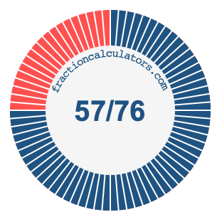 In addition, we will also illustrate the fraction 57/76 on a pie chart and 57/76 as a percent on a pie chart.