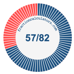 In addition, we will also illustrate the fraction 57/82 on a pie chart and 57/82 as a percent on a pie chart.