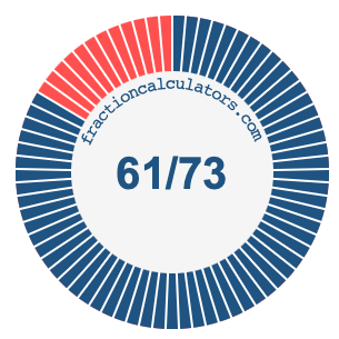 In addition, we will also illustrate the fraction 61/73 on a pie chart and 61/73 as a percent on a pie chart.
