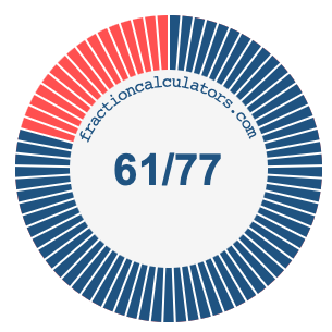 In addition, we will also illustrate the fraction 61/77 on a pie chart and 61/77 as a percent on a pie chart.