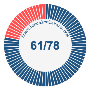 In addition, we will also illustrate the fraction 61/78 on a pie chart and 61/78 as a percent on a pie chart.