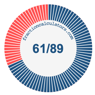 In addition, we will also illustrate the fraction 61/89 on a pie chart and 61/89 as a percent on a pie chart.