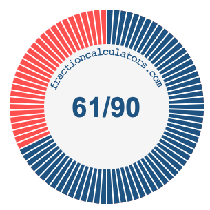 In addition, we will also illustrate the fraction 61/90 on a pie chart and 61/90 as a percent on a pie chart.