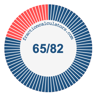In addition, we will also illustrate the fraction 65/82 on a pie chart and 65/82 as a percent on a pie chart.