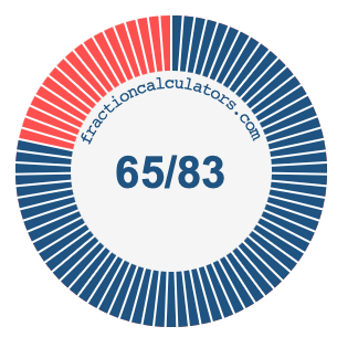 In addition, we will also illustrate the fraction 65/83 on a pie chart and 65/83 as a percent on a pie chart.
