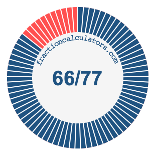 In addition, we will also illustrate the fraction 66/77 on a pie chart and 66/77 as a percent on a pie chart.