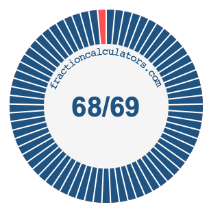 In addition, we will also illustrate the fraction 68/69 on a pie chart and 68/69 as a percent on a pie chart.
