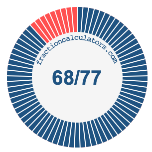 In addition, we will also illustrate the fraction 68/77 on a pie chart and 68/77 as a percent on a pie chart.