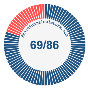 In addition, we will also illustrate the fraction 69/86 on a pie chart and 69/86 as a percent on a pie chart.