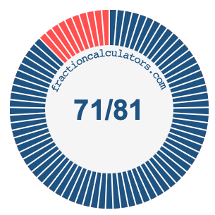 In addition, we will also illustrate the fraction 71/81 on a pie chart and 71/81 as a percent on a pie chart.