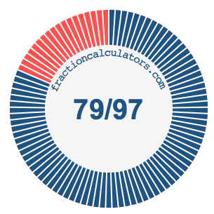In addition, we will also illustrate the fraction 79/97 on a pie chart and 79/97 as a percent on a pie chart.