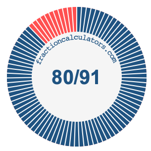 In addition, we will also illustrate the fraction 80/91 on a pie chart and 80/91 as a percent on a pie chart.