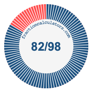 In addition, we will also illustrate the fraction 82/98 on a pie chart and 82/98 as a percent on a pie chart.