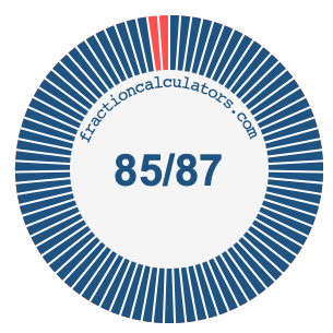 In addition, we will also illustrate the fraction 85/87 on a pie chart and 85/87 as a percent on a pie chart.