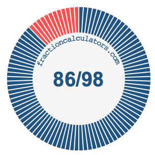 In addition, we will also illustrate the fraction 86/98 on a pie chart and 86/98 as a percent on a pie chart.
