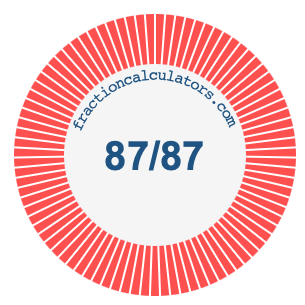 In addition, we will also illustrate the fraction 87/87 on a pie chart and 87/87 as a percent on a pie chart.