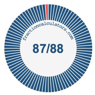 In addition, we will also illustrate the fraction 87/88 on a pie chart and 87/88 as a percent on a pie chart.