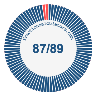 In addition, we will also illustrate the fraction 87/89 on a pie chart and 87/89 as a percent on a pie chart.