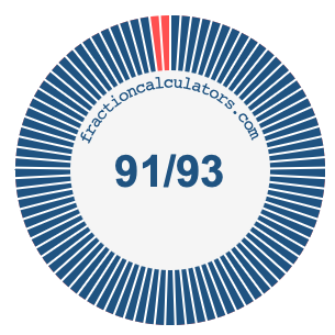 In addition, we will also illustrate the fraction 91/93 on a pie chart and 91/93 as a percent on a pie chart.