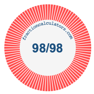 In addition, we will also illustrate the fraction 98/98 on a pie chart and 98/98 as a percent on a pie chart.