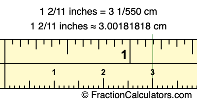 Centimeters is usually given in decimal form, so we have also converted the fractional answer to 1 2/11 inches to cm, to decimal form: