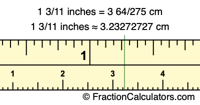 Centimeters is usually given in decimal form, so we have also converted the fractional answer to 1 3/11 inches to cm, to decimal form: