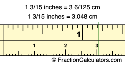 Centimeters is usually given in decimal form, so we have also converted the fractional answer to 1 3/15 inches to cm, to decimal form: