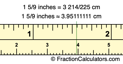 One inch is equal to 127/50 centimeters. Therefore, to get the fractional answer to 1 5/9 inches to cm, we multiply 1 5/9 inches by 127/50 and simplify if necessary.