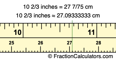 Centimeters is usually given in decimal form, so we have also converted the fractional answer to 10 2/3 inches to cm, to decimal form: