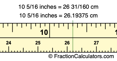 Centimeters is usually given in decimal form, so we have also converted the fractional answer to 10 5/16 inches to cm, to decimal form:
