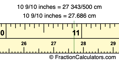 Centimeters is usually given in decimal form, so we have also converted the fractional answer to 10 9/10 inches to cm, to decimal form:
