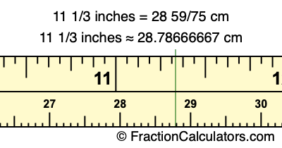 Centimeters is usually given in decimal form, so we have also converted the fractional answer to 11 1/3 inches to cm, to decimal form: