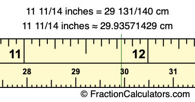 Centimeters is usually given in decimal form, so we have also converted the fractional answer to 11 11/14 inches to cm, to decimal form: