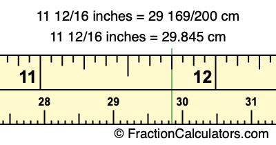 Centimeters is usually given in decimal form, so we have also converted the fractional answer to 11 12/16 inches to cm, to decimal form: