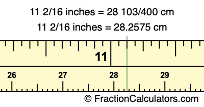 11 2/16 inches = 28.2575 cm
