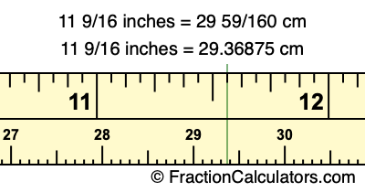 Here is how to convert 11 9/16 inches to cm. We will give you the fractional answer, the decimal answer, and illustrate the answer on our tape measure.