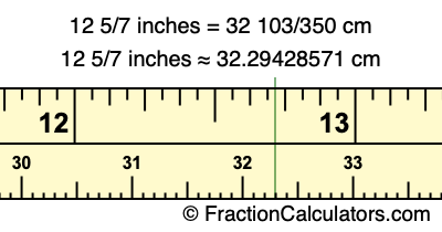 Centimeters is usually given in decimal form, so we have also converted the fractional answer to 12 5/7 inches to cm, to decimal form: