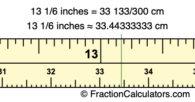 Here is how to convert 13 1/6 inches to cm. We will give you the fractional answer, the decimal answer, and illustrate the answer on our tape measure.