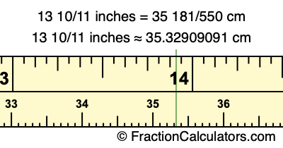 13 10/11 inches ≈ 35.32909091 cm