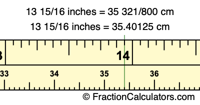 Centimeters is usually given in decimal form, so we have also converted the fractional answer to 13 15/16 inches to cm, to decimal form:
