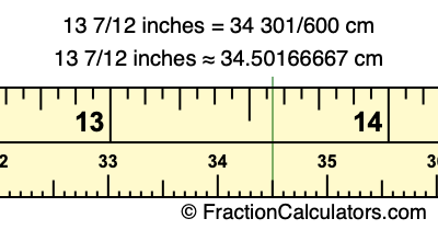 Here is how to convert 13 7/12 inches to cm. We will give you the fractional answer, the decimal answer, and illustrate the answer on our tape measure.