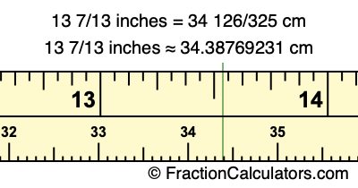 Here is how to convert 13 7/13 inches to cm. We will give you the fractional answer, the decimal answer, and illustrate the answer on our tape measure.