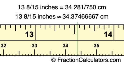 One inch is equal to 127/50 centimeters. Therefore, to get the fractional answer to 13 8/15 inches to cm, we multiply 13 8/15 inches by 127/50 and simplify if necessary.