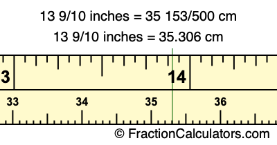 Centimeters is usually given in decimal form, so we have also converted the fractional answer to 13 9/10 inches to cm, to decimal form: