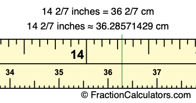 Centimeters is usually given in decimal form, so we have also converted the fractional answer to 14 2/7 inches to cm, to decimal form: