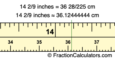 One inch is equal to 127/50 centimeters. Therefore, to get the fractional answer to 14 2/9 inches to cm, we multiply 14 2/9 inches by 127/50 and simplify if necessary.