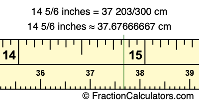 Centimeters is usually given in decimal form, so we have also converted the fractional answer to 14 5/6 inches to cm, to decimal form: