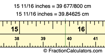 Centimeters is usually given in decimal form, so we have also converted the fractional answer to 15 11/16 inches to cm, to decimal form: