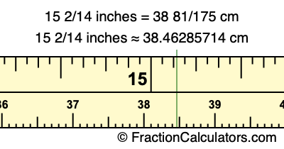 Centimeters is usually given in decimal form, so we have also converted the fractional answer to 15 2/14 inches to cm, to decimal form:
