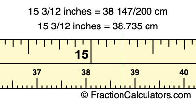 15 3/12 inches = 38 147/200 cm
